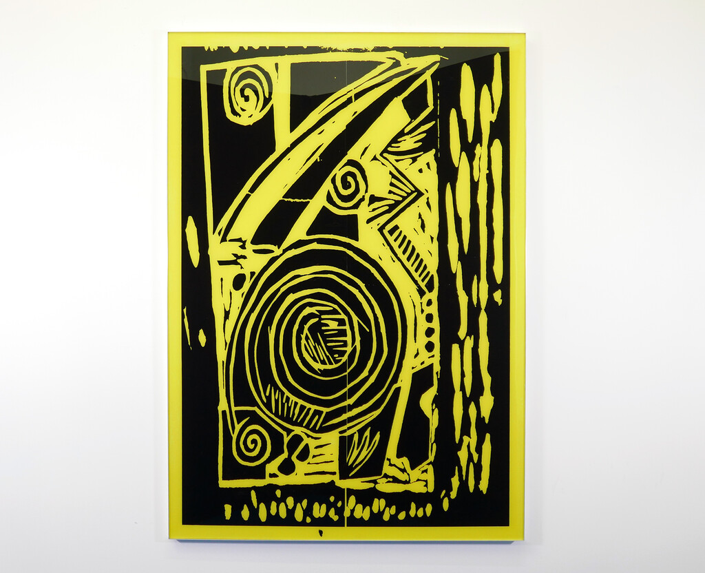 The makeover Andy undertakes with the swirly woodcuts seems to be an attempt at addressing this impasse. We cannot resolve the problem of stupidity in the work. But there is the option of, as the artist said, informally, “assisting” the work. Making it better. This is an act of empathy and also a bit of disrespect. But the disrespect could be seen as productive rather than plainly mean. This is why I called it a makeover. Makeovers essentially operate in this slightly unstable state, taking energy and permission from a sort of disrespect in the service of a claimed benevolence. (Or maybe the better word is largess). I temporarily erase your own agency in order to make a new you. What is better about these new versions? The emptiness of the signifiers is unchanged, but the delivery is given confidence and polish. The step away from vernacular workshop craftiness gives the emptiness a deliberateness, and a professionalism. It becomes a knowing choice rather than the mistaken self-concept that it is effective in its evocation of an ancient set of meaningful symbols.